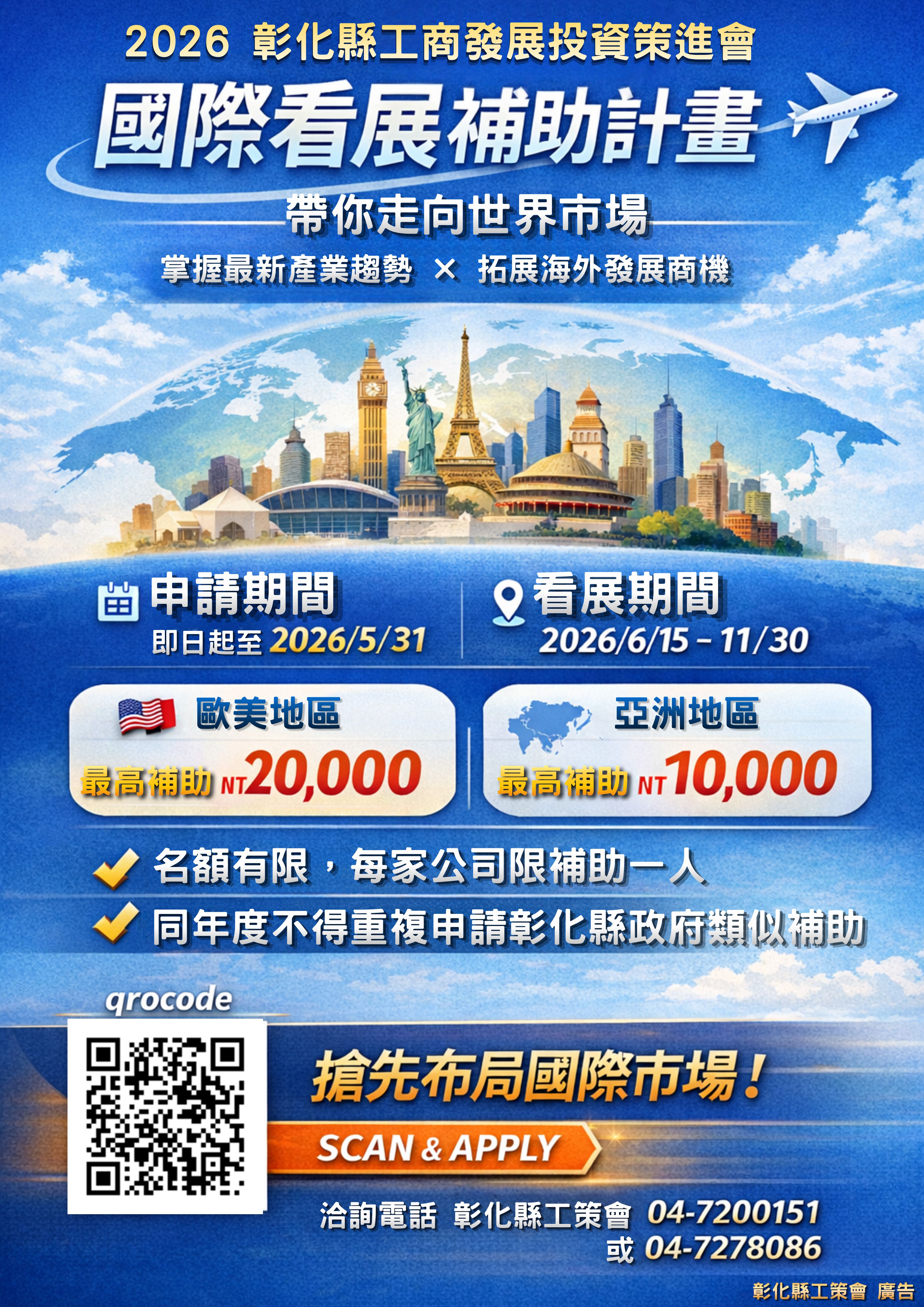 近年國際經貿情勢變動劇烈,受關稅政策、美伊戰爭、淨零轉型及AI發展影響,台灣出口導向產業面臨高度競爭壓力。彰化縣以中小企業為主體,傳統產業受衝擊尤為顯著,亟需拓展國際市場與提升競爭力。本計畫透過輔導廠商參與國際展覽看展活動,協助掌握市場趨勢、拓展商機並促進產業升級。
